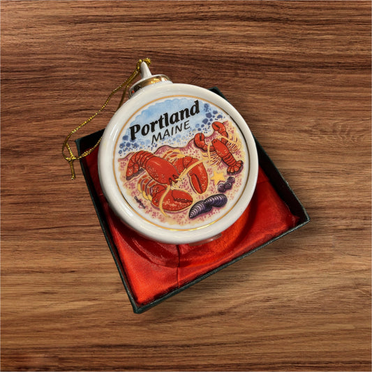**Hand-Painted Lobster Ceramic Christmas Ornament – Coastal Holiday Charm**