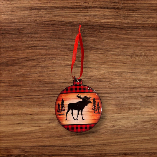**Handcrafted Moose-Printed Wooden Christmas Ornament – Rustic Holiday Charm**